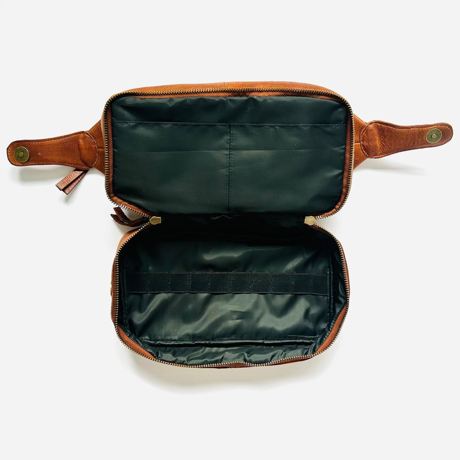 Add timeless elegance and practical design to your everyday essentials with this handcrafted leather wash bag. Made from high-quality, full-grain leather, this versatile piece boasts a rich tan color that only gets better with age. The soft, durable leather and detailed stitching reflect expert craftsmanship and attention to detail.